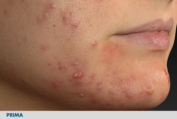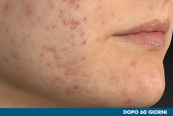 1Foto prima e dopo 60 giorni ottenuta con Vectra H2. 14 Soggetti con età 19-39, pelle a tendenza acneica con imperfezioni. 2 Autovalutazione, 14 soggetti, età 19-39, pelle a tendenza acneica con imperfezioni. Il prodotto è stato applicato due volte al giorno per 60 giorni.RISULTATI