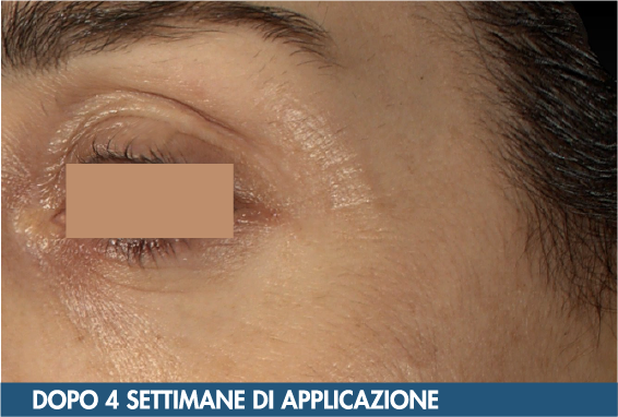 *Foto prima e dopo rappresentative del valore medio ottenute con Vectra H2. Test condotto da laboratorio indipendente su: 29 volontari, età 35-59 anni, con pelle/occhi sensibili e alterazione della barriera cutanea. Il prodotto è stato applicato sul contorno occhi e ciglia 2 volte al giorno, mattina e sera, per 4 settimane. **Test strumentale condotto da laboratorio indipendente su: 29 volontari, età 35-59 anni, con pelle/occhi sensibili e alterazione della barriera cutanea. Il prodotto è stato applicato sul contorno occhi e ciglia 2 volte al giorno, mattina e sera, per 4 settimane. ¹Valore medio del miglioramento della riduzione della TEWL misurato con Tewameter TM Hex. ²Valore medio della misurazione del contenuto proteico dei corneociti misurato tramite tape-stripping con SquameScanTM. ³Valore medio dell’effetto idratante misurato con Corneometer CM 825. ⁴Valore medio dell’effetto levigante misurato con Antera 3D ®. **Test di autovalutazione condotto da laboratorio indipendente su: 29 volontari, età 35-59 anni, con pelle/occhi sensibili e alterazione della barriera cutanea. Il prodotto è stato applicato sul contorno occhi e ciglia 2 volte al giorno, mattina e sera, per 4 settimane.RISULTATI