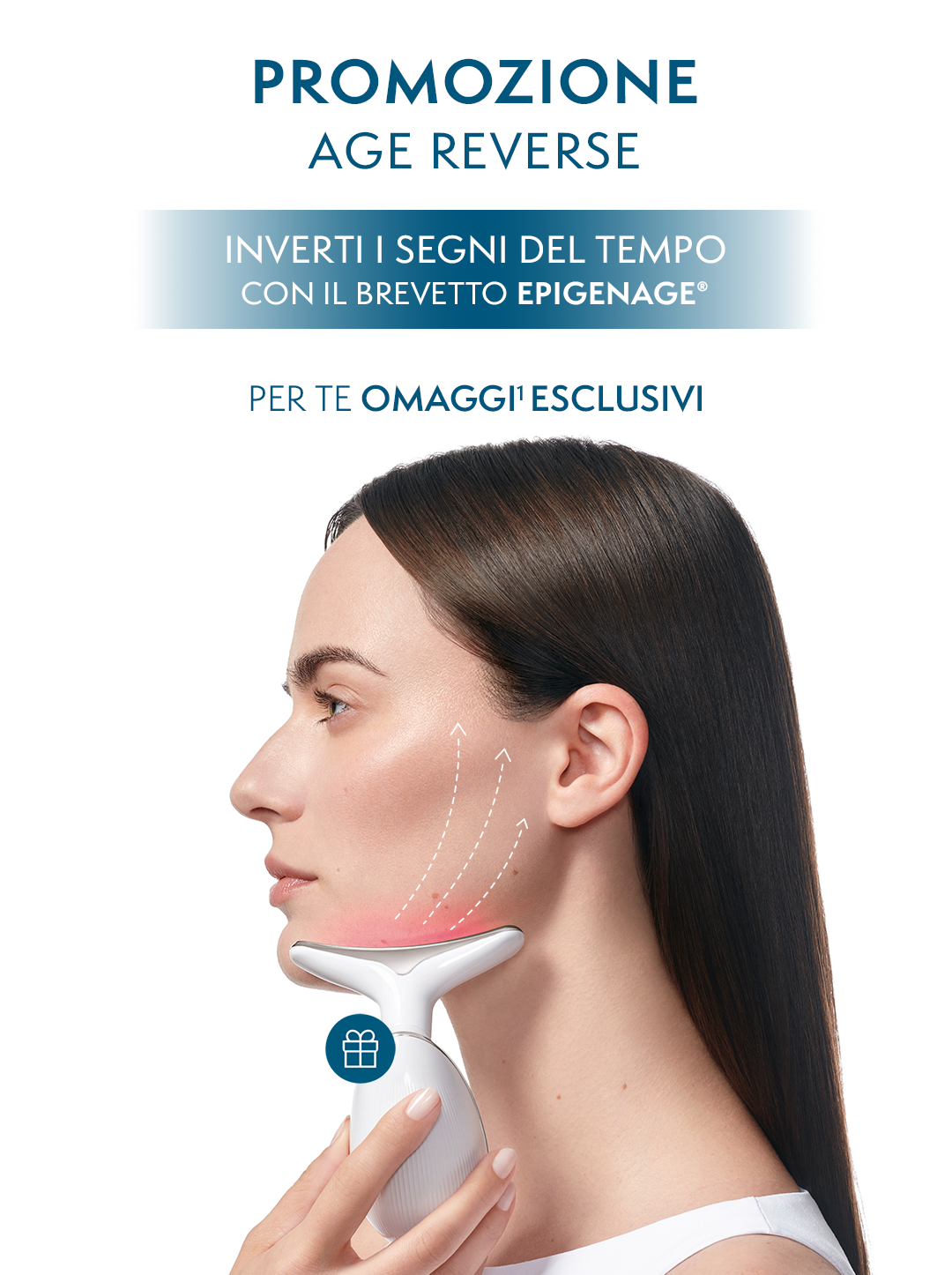 ¹Operazione a premi «MIAMO PROTOCOLLO V-SHAPE ONLINE» valida dal 26 gennaio 2026 al 26 febbraio 2026. All’acquisto di almeno 50€ di prodotti della gamma AGE REVERSE: n. 1 PROTOCOLLO V-SHAPE: n. 1 Epigenage shot nel formato da 1ml, n. 1 Age Reverse Cream nel formato da 5ml e n 2 Glow Primer Serum nel formato da 1ml. All’acquisto di almeno 100€ di prodotti della gamma AGE REVERSE: n. 1 PROTOCOLLO V-SHAPE come sopra e n. 1 Led Facial & Neck Massager. Leggi QUI il regolamento ufficiale.