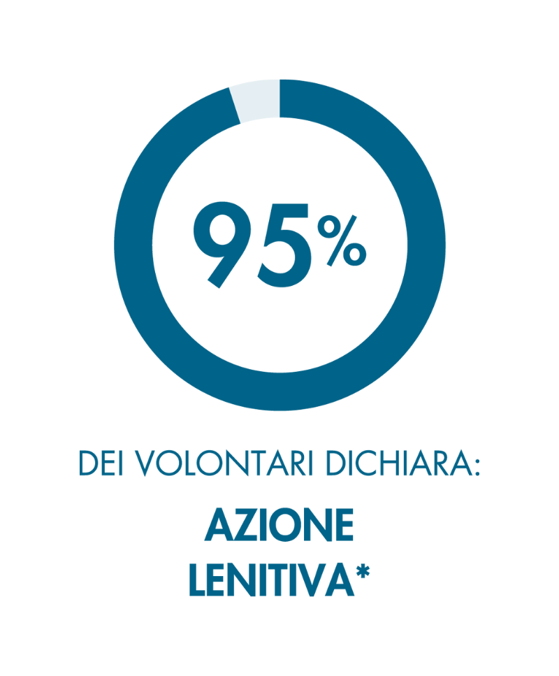 Test condotto su 20 volontari, età 24-60 con cute arrossata e sensibile. Il prodotto è stato applicato sul viso due volte al giorno per 4 settimane. Foto prima e dopo la prima applicazione. *Test di autovalutazione condotto su 20 volontari, età 24-60 con cute arrossata e sensibile. Il prodotto è stato applicato sul viso due volte al giorno per 4 settimane.RISULTATI